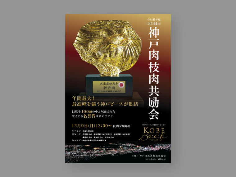 今年度も、神戸ビーフ取り扱いが許可された正規指定登録店にのみ配布される、販売促進支援を目的とした店頭ツール「カレンダー」「指定登録店ポスター」と、12月に開催される年間最大のせりの告知ツール「神戸肉枝肉共励会ポスター」がリリースされています。