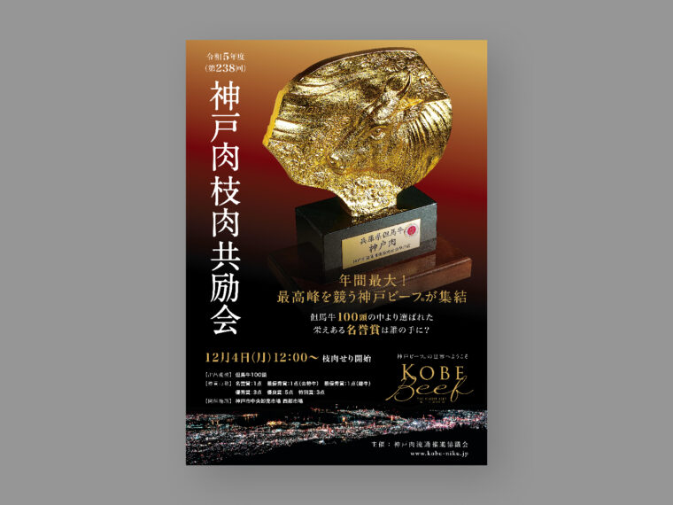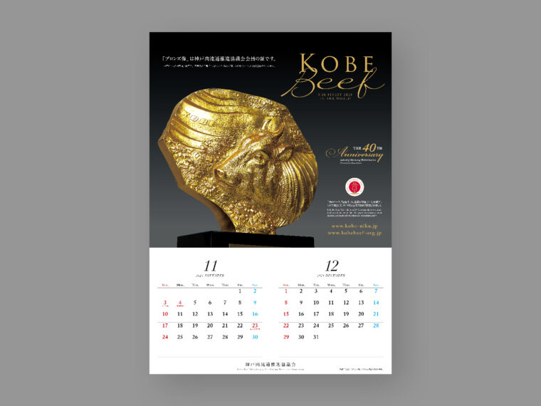 今年度も、神戸ビーフ取り扱いが許可された正規指定登録店にのみ配布される、販売促進支援を目的とした店頭ツール「カレンダー」「指定登録店ポスター」と、12月に開催される年間最大のせりの告知ツール「神戸肉枝肉共励会ポスター」がリリースされています。